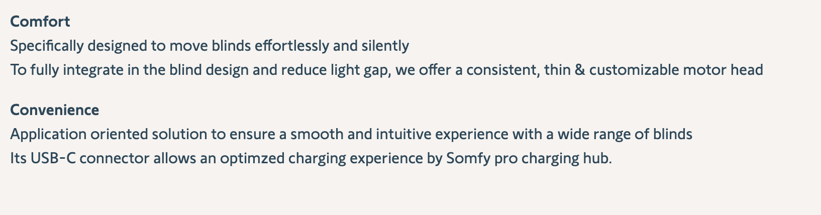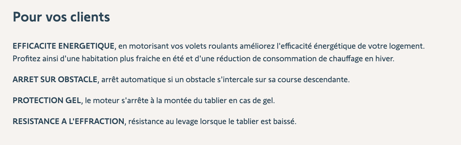 All caps used to describe benefits without accents and on the same line as the description make it hard to decipher