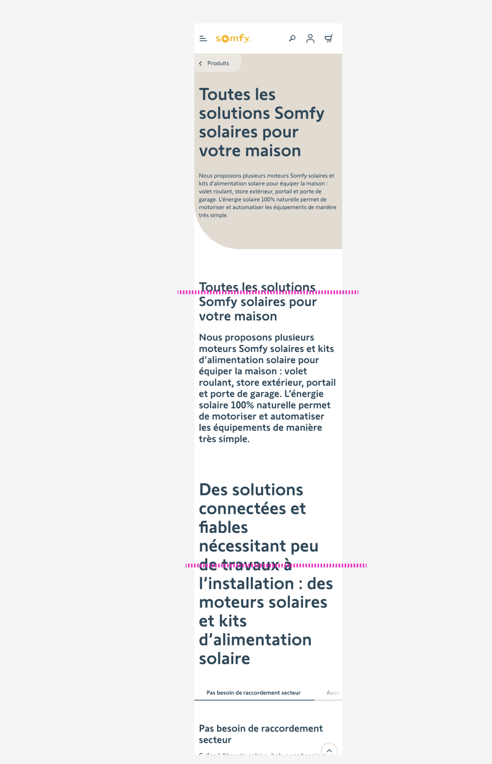 The second most consulted page on somfy.de on mobile, Somfy Pro Services, includes many blocks that are too dense and hard to scan