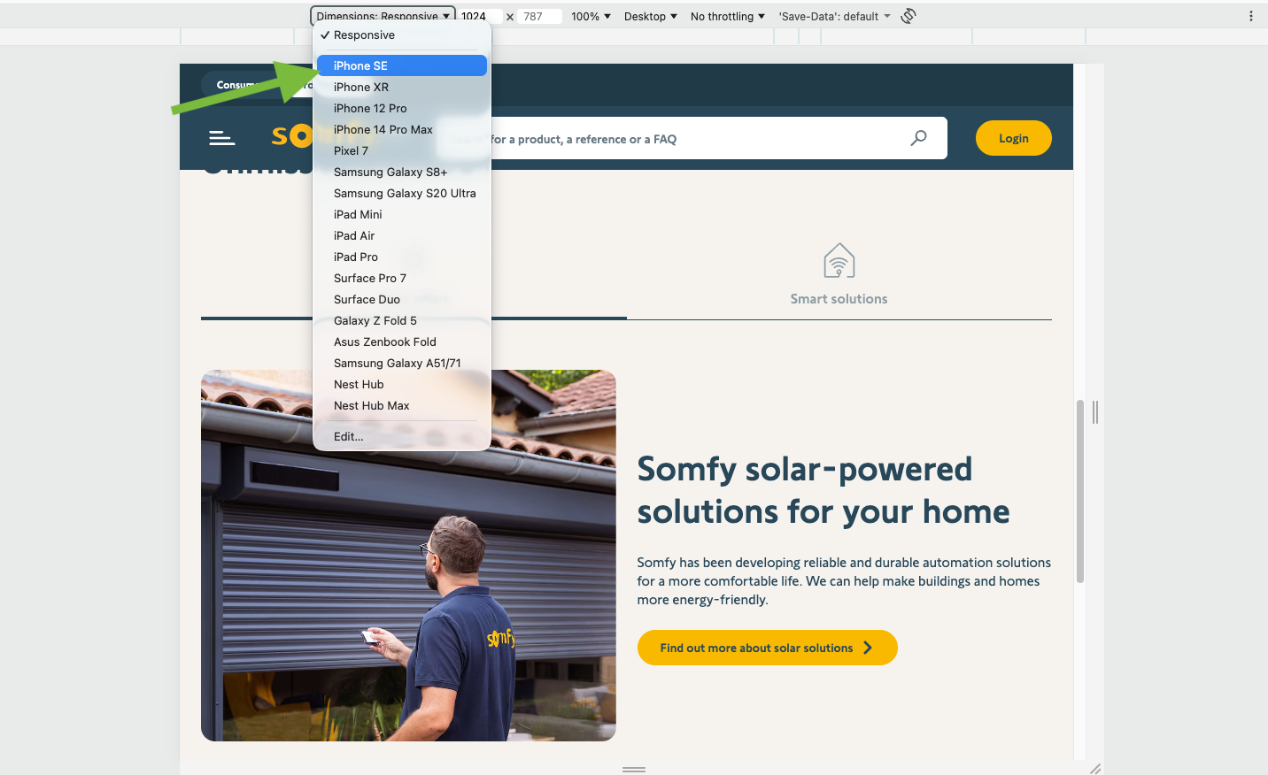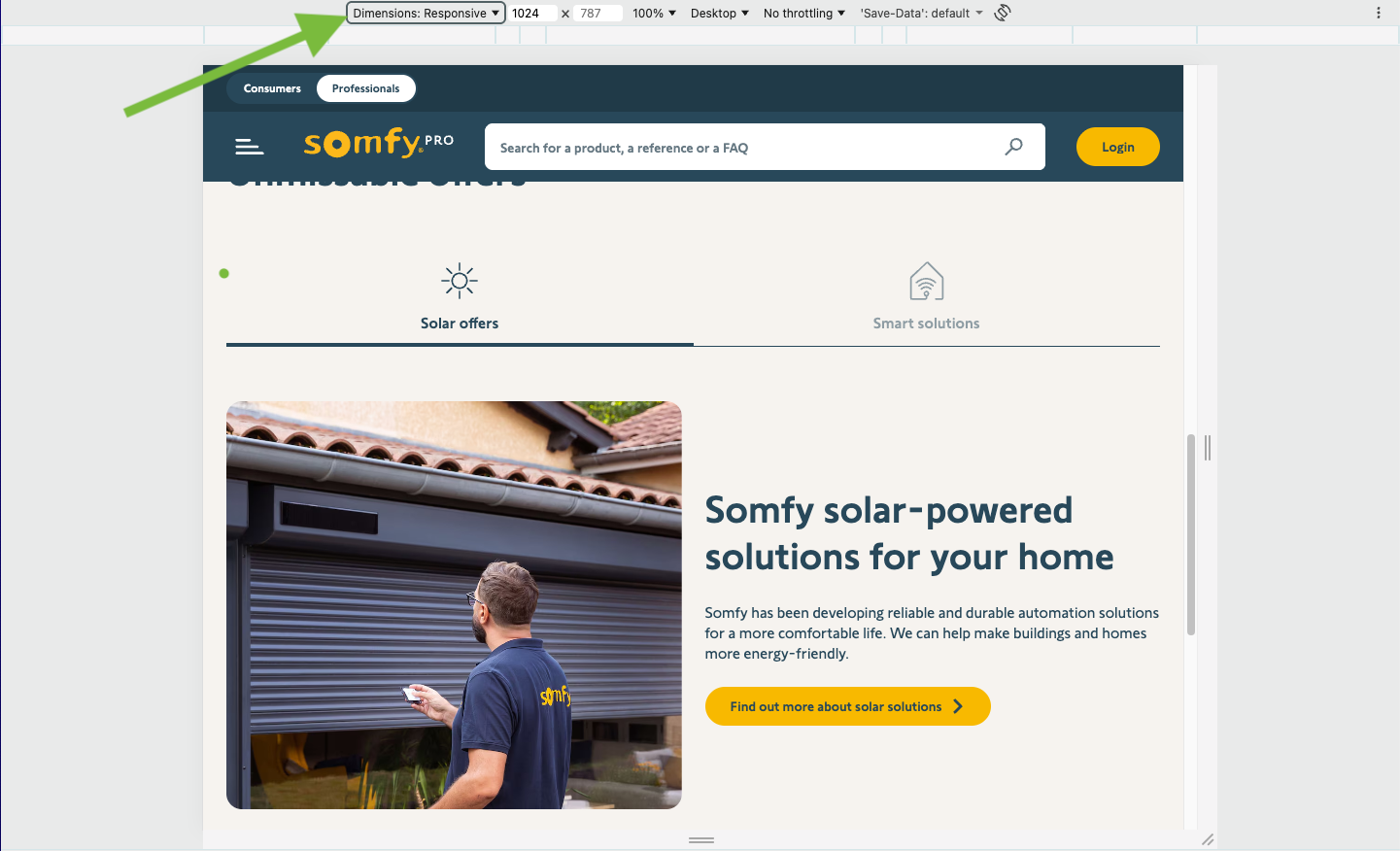 - Click on “Dimensions: Responsive” in the top bar of the tab